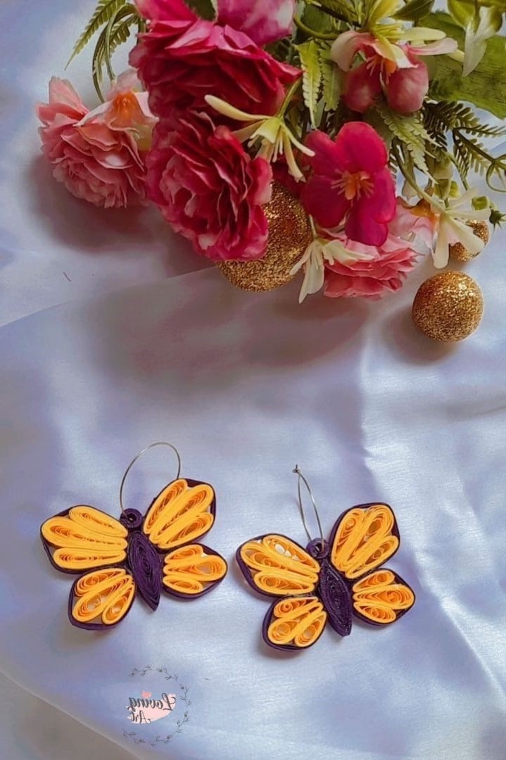 Give your Yellow-purple colored dress a style upgrade with this butterfly quilling earings,It is light weight and waterproof.